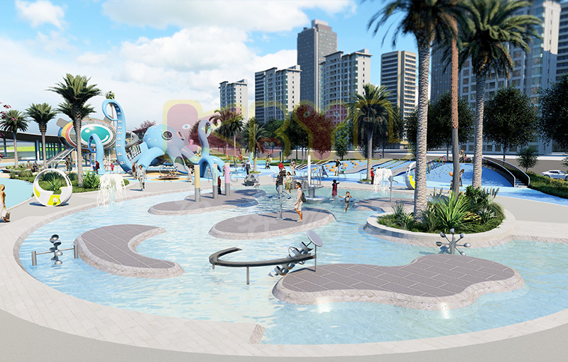 樂園附有一條蜿蜒的小溪,孩子、成年人和老年人可在這欣賞水景。這條小溪沿線有許多密集的長凳和科普類型的游樂設(shè)施,如阿基米德取水器、壓水槍、互動水渠等,朝向動線步行空間,還種植樹木提供陰涼...